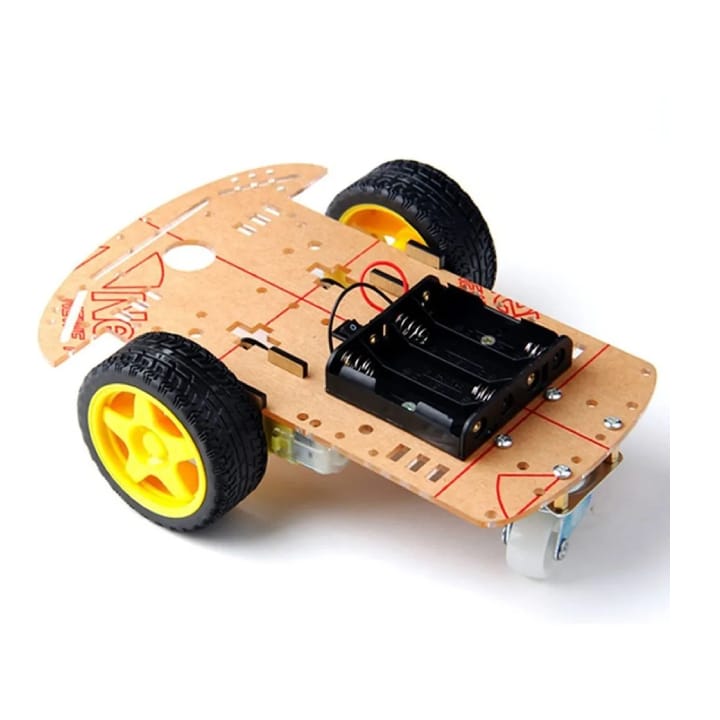 Compact 2WD robo car chassis kit suitable for beginners. Includes acrylic chassis, BO motors, wheels and hardware for line follower, obstacle avoidance and RC projects.